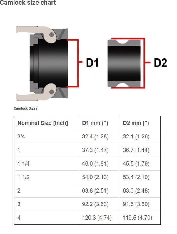 The male camlock fittings come in a range of different sizes and varieties.